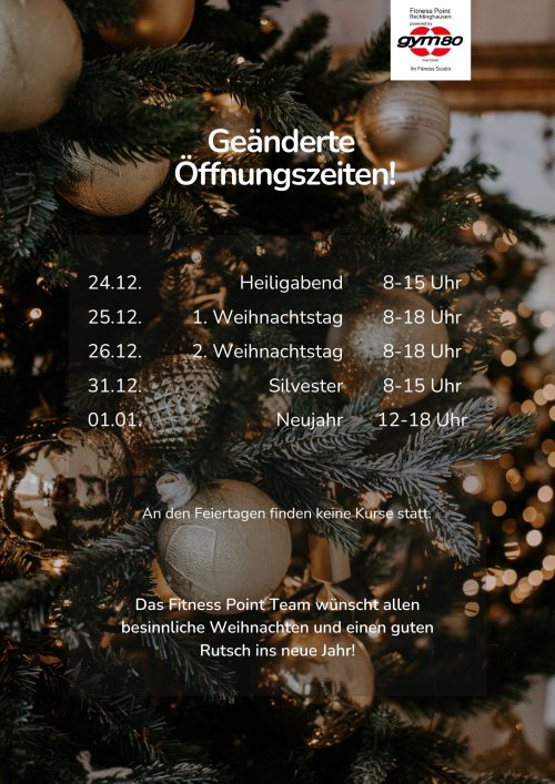 Feiertags geöffnet, an Feiertagen finden keine Kurse statt. (Zeiten können abweichen)