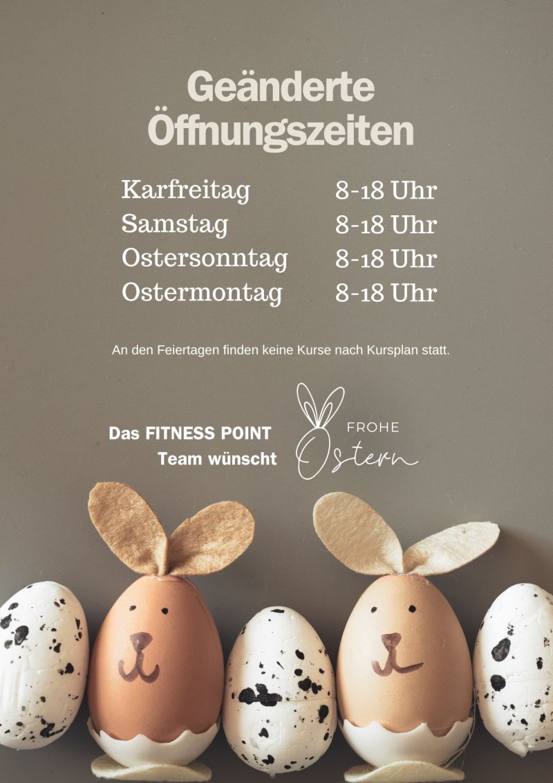 Feiertags geöffnet, an Feiertagen finden keine Kurse statt. (Zeiten können abweichen)